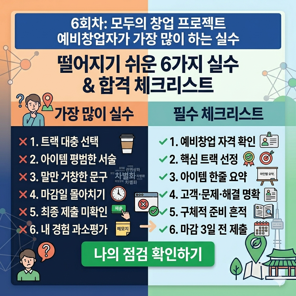 이건 정말 흔합니다. 로컬트랙이 쉬워 보이니까 그냥 넣는다. 일반/기술트랙은 기술자만 가는 줄 안다. 아이템 성격보다 “왠지” 느낌으로 고른다. 하지만 트랙은 전략적으로 골라야 합니다. 지역성이 핵심이면 로컬트랙, 서비스 구조나 확장성이 중심이면 일반/기술트랙. 애매할 때는 이렇게 생각하면 쉽습니다. 내 아이템에서 지역명을 빼도 성립하면 일반/기술트랙, 지역명을 빼면 설명이 무너지면 로컬트랙입니다.